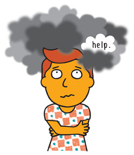 Character feeling cold and alone, surrounded by grey clouds and asking for help.