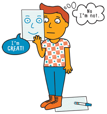 Illustration of character reading a ‘good book’ to help with their mental health.