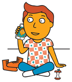 Character feeling happy whilst relaxing in a beanbag an watching a film.